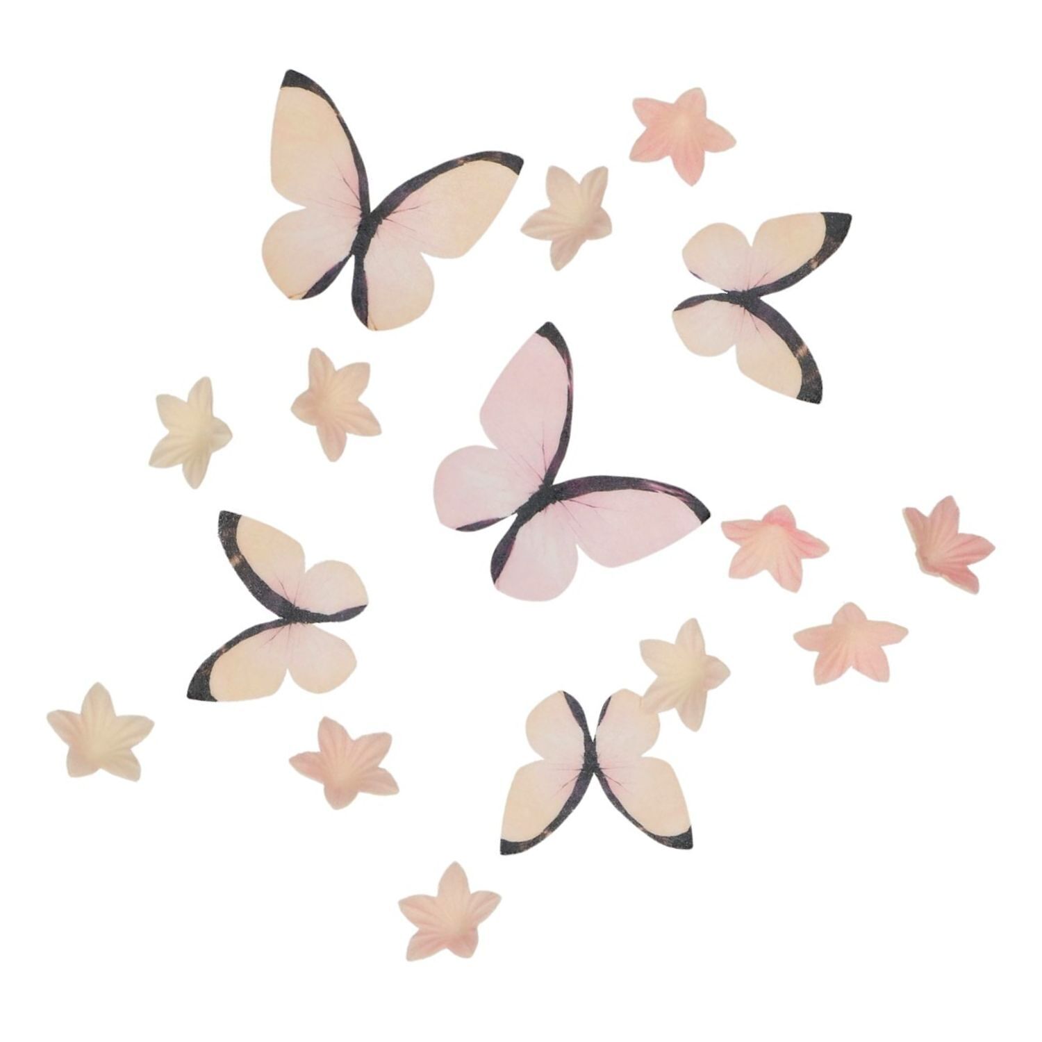 Dieses bezaubernde Set enthält 30 zarte Blumen und Schmetterlinge in verschiedenen Rosatönen, die jeder süßen Kreation einen romantischen, eleganten und frühlingshaften Touch verleihen.